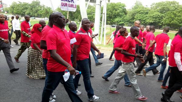 cooperation with the protesters.About one thousand people has gathered at the Unity Fountain, the starting point of the protest, at 15.20. The protesters, under the leadership of Oby Ezekwesili, wear red t-shirts.
